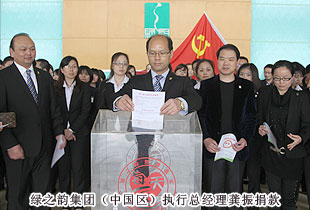 愛是世界上最美的語言,行動(dòng)是對(duì)生命最大的敬畏。綠之韻集團(tuán)繼4月21日通過湖南省光彩基金促進(jìn)會(huì)、長(zhǎng)沙光彩事業(yè)促進(jìn)會(huì)向四川雅安災(zāi)區(qū)緊急捐贈(zèng)第一筆300萬元人民幣愛心款項(xiàng)后,又于4月22日下午繼續(xù)愛心的接力,組織集團(tuán)總部及綠之韻國(guó)際大酒店貴賓樓的全體員工向?yàn)?zāi)區(qū)捐款。綠之韻集團(tuán)董事常務(wù)副總裁勞嘉、綠之韻集團(tuán)(中國(guó)區(qū))執(zhí)行總經(jīng)理龔振、綠之韻集團(tuán)黨總支書記許達(dá)仲等集團(tuán)高管帶頭通過現(xiàn)金或愛心認(rèn)捐書的方式向?yàn)?zāi)區(qū)進(jìn)行愛心募捐。