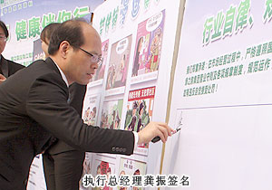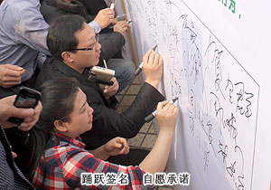 2013年,是綠之韻集團(tuán)創(chuàng)立十周年,也是品牌和服務(wù)競(jìng)爭(zhēng)加劇的一年,更是思想上同心同德、目標(biāo)上同心同向、行動(dòng)上同心同行的關(guān)鍵之年。在現(xiàn)場(chǎng)觀眾目光的凝視下,綠之韻集團(tuán)執(zhí)行總經(jīng)理龔振帶領(lǐng)公司高管和廣大經(jīng)銷商在《行業(yè)自律、規(guī)范經(jīng)營承諾書》展板上簽名,自愿承諾:“在市場(chǎng)經(jīng)營過程中,嚴(yán)格遵照國家相關(guān)法律、法規(guī)進(jìn)行合法經(jīng)營,堅(jiān)決遵照?qǐng)?zhí)行《綠之韻集團(tuán)營業(yè)守則》及各項(xiàng)規(guī)章制度,規(guī)范運(yùn)作;堅(jiān)決杜絕一切破壞市場(chǎng)良性經(jīng)營的違規(guī)行為,如有違反自覺接受處罰!”莊嚴(yán)承諾激蕩人心,有條不紊的簽名行動(dòng)充分展示出全體綠之韻人對(duì)市場(chǎng)規(guī)范經(jīng)營的決心,給予了市場(chǎng)穩(wěn)健發(fā)展強(qiáng)大的動(dòng)力,讓廣大消費(fèi)者充分感受民族直銷企業(yè)高度的公信力和社會(huì)責(zé)任感。