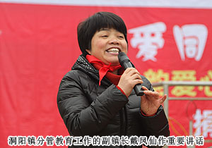 捐贈(zèng)儀式上,洞陽鎮(zhèn)分管教育工作的副鎮(zhèn)長戴鳳仙作了重要講話,她稱贊綠之韻是愛心的傳遞者和溫暖的奉獻(xiàn)者。并感謝綠之韻集團(tuán)長期以來對(duì)洞陽鎮(zhèn)教育事業(yè)無盡的關(guān)心和支持,對(duì)學(xué)生真誠的關(guān)愛和幫助。同時(shí),她呼喚更多的企業(yè)家和愛心人士關(guān)注貧困學(xué)生、關(guān)注洞陽教育事業(yè),勉勵(lì)學(xué)子們要把愛心人士的這份關(guān)懷化作學(xué)習(xí)中的不竭動(dòng)力,學(xué)有所成,奮發(fā)圖強(qiáng),盡自己最大的能力回報(bào)社會(huì)!