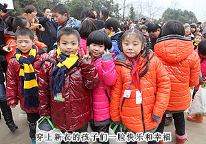 隨后,綠之韻集團(tuán)董事、常務(wù)副總裁勞嘉和綠之韻20名愛心經(jīng)銷商、愛心慈善大使一起為貧困學(xué)生們穿上嶄新的冬衣、發(fā)放學(xué)習(xí)用品。盡管操場上寒風(fēng)簌簌,可領(lǐng)取到滿載著愛心的嶄新冬衣后,孩子們每個(gè)人的臉上都綻放出著歡樂和幸福的笑容。綠之韻濃縮著溫情的冬衣帶給莘莘學(xué)子的不只是暖意,在這樣一個(gè)充滿著奉獻(xiàn)與感恩的冬天,更多的愛心正在萌發(fā)、生長和茁壯。
