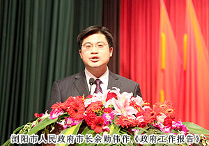 瀏陽市人民政府市長余勛偉向大會作《政府工作報告》。對過去五年政府工作進行了回顧總結后,余勛偉表示,今后五年將是瀏陽跨越發(fā)展的戰(zhàn)略機遇期,是全面建成小康社會的關鍵時期。瀏陽融城對接、開放帶動的區(qū)位優(yōu)勢日漸凸顯;多點支撐的發(fā)展平臺和多極帶動的產(chǎn)業(yè)集群初具雛形;全市上下勵精圖治、奮發(fā)圖強的干事創(chuàng)業(yè)氛圍日益濃厚。未來五年的發(fā)展愿景是:經(jīng)濟實力大增強,到2017年,實現(xiàn)地區(qū)生產(chǎn)總值1400億元,財政總收入120億元,市域經(jīng)濟基本競爭力挺進全國三十強,城市格局大改觀,城鄉(xiāng)面貌大變樣,幸福指數(shù)大提升,推進基本公共服務均等化,朝共同富裕的方向穩(wěn)步前進。