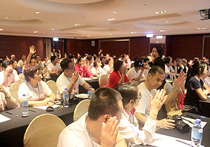 “他山之石,可以攻玉。”逐步邁向成功巔峰的綠之韻人總是以謙虛的姿態(tài)不斷學習著。在本次旅途中,一場震撼思想的研討會為臺灣之旅賦予了更生動的靈魂。臺灣地區(qū)營銷管理大師張力中先生與伙伴們零距離交流,傳授發(fā)人深省的拼搏之道,為人之本。讓伙伴們在學習與分享中,取思想精華,積蓄騰飛力量。