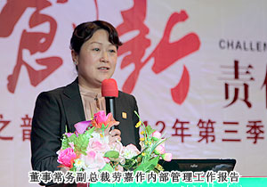 市場是綠之韻賴以生存的基礎,健康持續(xù)是綠之韻發(fā)展的目標,安全穩(wěn)定是綠之韻管理的要求。會議上,綠之韻集團常務副總裁勞嘉等全體高管分別從各自分管領域,針對第三季度工作進行了回顧和總結(jié),并在接下來工作部署中表示,要真正領會企業(yè)的“競合”精神,進一步增強創(chuàng)新意識、發(fā)展意識、憂患意識和服務意識,在第四季度重點抓好業(yè)績沖刺工作、綠之韻九周年年會工作以及明年發(fā)展制定工作計劃。同時,綠之韻集團六位分公司經(jīng)理也專程從湖南、內(nèi)蒙古、河北、遼寧、黑龍江、吉林奔赴長沙出席本次會議,他們帶來了各區(qū)域市場一線最前沿的情況,并就各分公司業(yè)績、內(nèi)部管理、市場環(huán)境等情況做出了詳細匯報?!胺N下梧桐樹,引得鳳凰來”,隨著綠之韻的不斷壯大,越來越多的新鮮力量不斷加入。會議上,張潔等8位新同事在進行自我介紹時都表示,入職以來深深感受到綠之韻企業(yè)文化的吸引力,在未來的日子會發(fā)揮自己所長,與綠之韻共同成長。