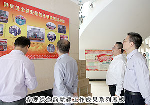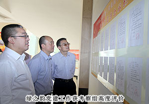 在調(diào)研中,彭繼球主席一行詳細了解了綠之韻的經(jīng)營現(xiàn)狀及遠景規(guī)劃,參觀了產(chǎn)品形象展廳,對“清調(diào)補衡”的產(chǎn)品理念及利稅、公益等企業(yè)公民行為給予高度評價。在綠之韻黨支部黨建工作成果系列展板前,彭繼球主席一行停下腳步,就公司黨建工作與胡國安董事長進行了交流。作為非公經(jīng)濟企業(yè)優(yōu)秀基層黨組織,綠之韻黨支部積極扶危濟困,德行并重,發(fā)展企業(yè),回饋社會。連續(xù)多年取得的黨建成果,受到了考察組一行的高度贊揚。彭繼球主席重點指出:綠之韻黨支部在黨員隊伍的建設(shè)、發(fā)展教育管理、服務(wù)企業(yè)健康發(fā)展、為黨凝聚職工群眾等方面都做了大量的、有特色、有實效的工作,取得了明顯的成績。希望綠之韻黨支部在今后的工作中,進一步完善機制,加強領(lǐng)導,在推動企業(yè)發(fā)展、服務(wù)群眾、凝聚人心、促進和諧方面發(fā)揮出重要的作用。