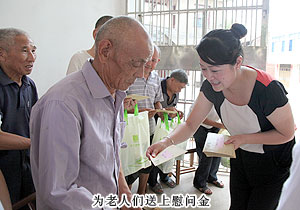 2012年8月3日上午,綠之韻黨支部又?jǐn)y手瀏陽市洞陽鎮(zhèn)政府舉辦了主題為“黨旗的溫暖”的敬老院慰問活動(dòng),綠之韻集團(tuán)董事常務(wù)副總裁勞嘉、黨支部書記許達(dá)仲帶領(lǐng)20名綠之韻黨團(tuán)員代表、綠之韻愛心志愿者來到洞陽鎮(zhèn)敬老院看望孤寡老人,為老人們送上愛心物資和關(guān)懷。