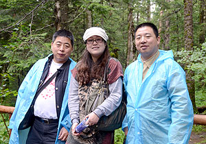 雖然因?yàn)樘鞖庠?,著名的長白山天池在云霧繚繞中不肯在我們面前揭開真面目,但從天池傾瀉而下的長白飛瀑,轟鳴如雷,水花四濺,霧氣遮天,生動地再現(xiàn)了“疑似龍池噴瑞雪,如同天際掛飛流”的神奇境界,長白山大峽谷集奇峰、怪石、幽谷、秀水、古樹、珍草為一體,溝壑險峻狹長,溪水淙淙清幽。其博大雄渾的風(fēng)格和洪荒原始的意境,深深地震撼了大家的心魄。長白山的地下森林是由于火山運(yùn)動而導(dǎo)致的大面積地層下陷形成,就如同探險小說里寫到的奇景,文字形容終覺淺,還需行到此處,才能領(lǐng)略到那種氣勢。大家穿著雨衣,吃著著名的溫泉水煮雞蛋,一路游覽一路歡笑,不亦樂乎。