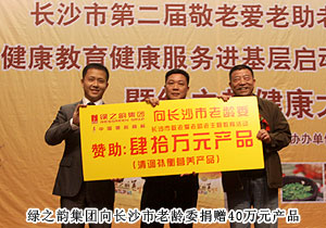 啟動(dòng)儀式上,綠之韻集團(tuán)副總經(jīng)理何健代表綠之韻慈善基金向長沙市老齡委捐贈(zèng)40萬元產(chǎn)品,為老人送上關(guān)愛與溫暖。綠之韻集團(tuán)執(zhí)行總經(jīng)理龔振表示:綠之韻堅(jiān)持以社會(huì)公益為己任,并大力展開“尋找百歲老人”“健康社區(qū)行”“健康大講堂”等公益活動(dòng),積極承擔(dān)社會(huì)責(zé)任,此次全體綠之韻人要以敬老愛老助老活動(dòng)為契機(jī),弘揚(yáng)中華民族“老吾老以及人之老”的傳統(tǒng)美德,號(hào)召全社會(huì)關(guān)注老人健康,關(guān)愛老人生活。會(huì)上,綠之韻集團(tuán)憑借在老年公益慈善行動(dòng)中的突出貢獻(xiàn)被評(píng)為“長沙市老年健康事業(yè)共建單位”;集中華五千年養(yǎng)生文化之大成的“清調(diào)補(bǔ)衡”綠之韻養(yǎng)生套盒被指定為“老年人健康養(yǎng)生專用產(chǎn)品”;綠之韻集團(tuán)董事長胡國安被授予“崇德積善慈父孝子為人先,弘揚(yáng)孝道敬老愛親我做起”榮譽(yù)匾牌,長沙市老齡委副主任、市民政局黨委委員楊為錦、廖肇聯(lián)為綠之韻集團(tuán)頒發(fā)榮譽(yù)。楊為錦表示:綠之韻為推動(dòng)老齡健康事業(yè)發(fā)展積極奉獻(xiàn),是敬老愛老助老的模范企業(yè),希望未來能繼續(xù)發(fā)揮企業(yè)優(yōu)勢(shì),讓更多老年人安享健康、幸福的晚年。
