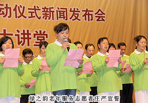 一直以來,綠之韻集團(tuán)十分重視“孝”文化傳播,在胡國安董事長的積極倡導(dǎo)下,涌現(xiàn)了一批敬老愛老助老的道德模范?;顒?dòng)現(xiàn)場(chǎng),在全場(chǎng)1300多名觀眾的見證下,30名綠之韻志愿者莊嚴(yán)宣誓,愿意用他們的言行踐行孝道文化的真正內(nèi)涵,為更多老年人創(chuàng)造一個(gè)燦爛美好的夕陽。