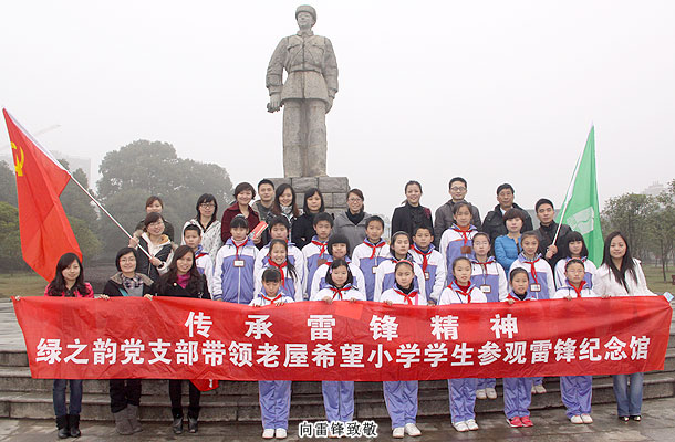 陽(yáng)春三月,是向雷鋒同志學(xué)習(xí)的日子。為更好地將雷鋒精神發(fā)揚(yáng)光大,2012年3月19日,綠之韻黨支部帶領(lǐng)綠之韻老屋希望小學(xué)學(xué)生參觀(guān)了位于望城縣雷鋒鎮(zhèn)的湖南雷鋒紀(jì)念館,與孩子們共同了解雷鋒、走近雷鋒、學(xué)習(xí)雷鋒,爭(zhēng)做雷鋒精神傳人。綠之韻國(guó)際大酒店貴賓樓執(zhí)行總經(jīng)理刁琳、綠之韻集團(tuán)黨支部書(shū)記許達(dá)仲參加了此次活動(dòng)。