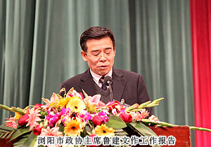 2011年12月25日,政協(xié)瀏陽市第八屆委員會第六次會議在瀏陽歐陽予倩大劇院隆重開幕。長沙市政協(xié)副主席、工商聯(lián)主席彭繼球,長沙市委統(tǒng)戰(zhàn)部副部長李偉,中共瀏陽市委副書記、代市長曹立軍,中共瀏陽市委副書記吳震,中共瀏陽市委副書記、政法委書記付旭明,瀏陽市政協(xié)主席魯建文,中共瀏陽市委常委、組織部部長、統(tǒng)戰(zhàn)部部長、市政協(xié)黨組副書記周春暉等各級領導出席會議。
