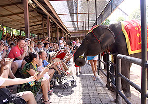 在這里,我們參觀了大皇宮、玉佛寺,游覽了湄南河、東芭樂園,騎大象、喂鱷魚、戰(zhàn)毒蛇,每一個行程都刺激著伙伴們貪玩的細胞,大家暢游曼谷,開懷大笑,統(tǒng)一身著綠之韻文化衫的伙伴無意間成為了曼谷街頭一道亮麗的風(fēng)景線。