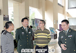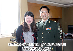 為更好地推進(jìn)“雙擁”工作,促進(jìn)軍民共建、軍地互動(dòng),密切新型軍政軍民關(guān)系。2011年11月1日上午,湖南省軍區(qū)政治部副主任胡鵬飛一行在綠之韻集團(tuán)董事長(zhǎng)胡國(guó)安、董事常務(wù)副總裁勞嘉的陪同下參觀了綠之韻總部辦公基地。