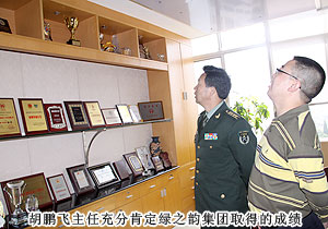 參觀過(guò)程中,胡鵬飛主任對(duì)綠之韻集團(tuán)多年來(lái)與部隊(duì)積極開展軍民共建活動(dòng)表示充分肯定,并表示:新的歷史任務(wù)、新的發(fā)展形勢(shì),需要全省黨政軍民齊心同力、不懈奮斗。我們要切實(shí)把雙擁工作作為凝聚全省軍民的力量,推動(dòng)湖南跨越式發(fā)展;圍繞推進(jìn)湖南科學(xué)發(fā)展、和諧發(fā)展,充分發(fā)揮軍隊(duì)在支援地方經(jīng)濟(jì)建設(shè)和維護(hù)社會(huì)穩(wěn)定中的重要作用。