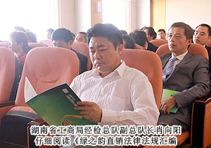 為紀(jì)念國(guó)務(wù)院頒布《直銷(xiāo)管理?xiàng)l例》和《禁止傳銷(xiāo)條例》實(shí)施六周年,進(jìn)一步規(guī)范直銷(xiāo)市場(chǎng)監(jiān)管,加強(qiáng)法律法規(guī)的宣傳力度,確保綠之韻做到規(guī)范自律、永續(xù)發(fā)展,2011年10月22日上午,在湖南省工商部門(mén)的指導(dǎo)下,綠之韻集團(tuán)紀(jì)念兩個(gè)《條例》學(xué)習(xí)會(huì)成功召開(kāi)。湖南省工商行政管理局經(jīng)檢總隊(duì)副總隊(duì)長(zhǎng)肖向陽(yáng)擔(dān)任主講嘉賓,綠之韻集團(tuán)董事常務(wù)副總裁勞嘉、總裁助理兼企劃教育總監(jiān)何健與總部員工、優(yōu)秀經(jīng)銷(xiāo)商、低碳事業(yè)部代表共同參加了此次學(xué)習(xí)會(huì)議。