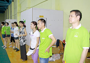 2011年9月13日,歷時一個多月的綠之韻集團(tuán)第四屆員工羽毛球比賽在長沙祥云羽毛球俱樂部圓滿結(jié)束。本次比賽設(shè)女子雙打、男子雙打、男女混雙三項,綠之韻集團(tuán)董事長胡國安、董事常務(wù)副總裁勞嘉、執(zhí)行總經(jīng)理龔振親自上陣,率91名踴躍報名的員工及員工家屬參加比賽。