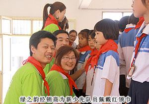 綠之韻集團(tuán)秉承回饋社會(huì)的經(jīng)營(yíng)理念 ,在發(fā)展中勇于承擔(dān)社會(huì)責(zé)任,從2004年捐助第一所綠之韻老屋希望小學(xué)開始就為更多的農(nóng)村孩子提供更多幫助。綠之韻集團(tuán)一直也關(guān)注著留守兒童這一特殊群體,2011年5月30日,在六一國際兒童即將來臨的時(shí)候,綠之韻慈善基金總執(zhí)行戴曉彥號(hào)召湖南當(dāng)?shù)氐膬?yōu)秀經(jīng)銷商們?yōu)槔衔菹MW(xué)的孩子們送上了六一節(jié)的禮物。綠之韻集團(tuán)董事常務(wù)副總裁勞嘉代表集團(tuán)領(lǐng)導(dǎo)及員工慰問了綠之韻老屋希望小學(xué)的留守兒童,并發(fā)表了講話,鼓勵(lì)孩子們要努力學(xué)習(xí),從小學(xué)會(huì)感恩社會(huì)、感恩學(xué)校和老師,樹立起遠(yuǎn)大的理想,爭(zhēng)做祖國的棟梁之才。在慰問活動(dòng)中,老屋希望小學(xué)還策劃了“紅領(lǐng)巾我為你自豪”的少先隊(duì)入隊(duì)儀式,綠之韻經(jīng)銷商和員工代表一起參加了神圣而光榮的少先隊(duì)員入隊(duì)儀式,并榮幸的為新隊(duì)員佩戴紅領(lǐng)巾,祝愿新老隊(duì)員能相互幫助共同進(jìn)步。綠之韻老屋希望小學(xué)的校長(zhǎng)也為綠之韻長(zhǎng)期以來關(guān)注教育關(guān)愛青少年兒童的成長(zhǎng)表示了真摯的感謝。