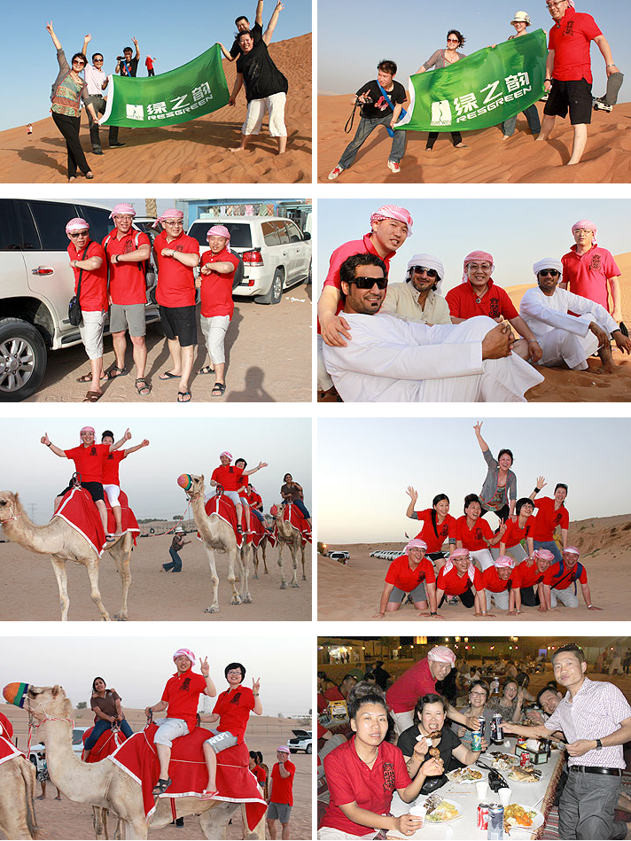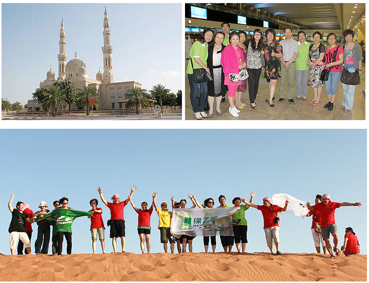 迪拜是奢華的代名詞,創(chuàng)造著許多的“世界之最”。20世紀(jì)50年代,它還是阿拉伯灣一個樸素的海濱小鎮(zhèn),到了90年代以后,鱗次櫛比的摩天大樓在霍爾河畔奇跡般地崛起,成為全世界一個具有神奇吸引力的旅游寶地。2011年5月19日—23日,綠之韻精英首屆相約迪拜之旅浪漫演繹。50多名以頑強(qiáng)拼搏精神書寫人生奇跡的綠之韻營銷伙伴踏上了精彩紛呈的“逐夢之旅”。在漫漫沙漠中騎著駱駝追尋人生夢想,在沙柔水凈的海灘上享受陽光的撫摸,在塵埃下的村落聽古老的風(fēng)塔述說愛情神話,在金光耀眼的黃金市場揮灑瘋狂購物的快感,在七星級的帆船酒店盡享尊貴服務(wù)……這就是迪拜,一半是海洋,一半是沙漠的夢幻之地,一個用財富和奢華堆砌的神話之都。