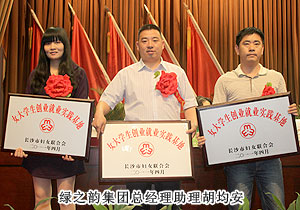 近年來,長沙市各級組織和單位緊緊圍繞市委、市政府打造“創(chuàng)業(yè)之都”和創(chuàng)建全國創(chuàng)業(yè)型城市的總體目標,以“創(chuàng)業(yè)富民、巾幗示范在行動”為載體,積極實施創(chuàng)業(yè)就業(yè)促進行動,在全市組織開展了“巾幗創(chuàng)業(yè)示范基地”、“女大學生創(chuàng)業(yè)就業(yè)實踐基地”的評選活動。2011年4月28日,綠之韻集團被長沙市婦女聯合會評選為長沙市“女大學生創(chuàng)業(yè)就業(yè)實踐基地”。中共長沙市委常委、統(tǒng)戰(zhàn)部長虢正貴、副市長何寄華等市級領導出席本次會議并頒發(fā)榮譽牌匾,長沙市婦聯黨組書記、主席譚慧慧作工作報告。