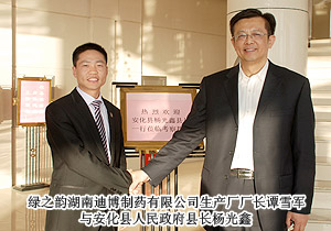 為貫徹湖南省委、省政府加快醫(yī)藥產(chǎn)業(yè)發(fā)展的相關(guān)指示精神,長(zhǎng)沙國(guó)家生物產(chǎn)業(yè)基地與湖南益陽(yáng)安化縣人民政府達(dá)成合作協(xié)議,正式啟動(dòng)益陽(yáng)安化中藥產(chǎn)業(yè)園建設(shè)項(xiàng)目。2010年12月22日,長(zhǎng)沙國(guó)家生物產(chǎn)業(yè)基地管理委員會(huì)就開發(fā)與建設(shè)益陽(yáng)安化中藥產(chǎn)業(yè)園召開專題會(huì)議,綠之韻集團(tuán)董事長(zhǎng)胡國(guó)安出席此次會(huì)議,并就綠之韻集團(tuán)在未來(lái)五年斥資億元建設(shè)益陽(yáng)安化中藥材種植基地及原材料提取中心與安化縣人民政府、長(zhǎng)沙國(guó)家生物產(chǎn)業(yè)基地正式簽定合作協(xié)議,成為湖南省中醫(yī)藥產(chǎn)業(yè)發(fā)展以及國(guó)家發(fā)改委與商務(wù)部重點(diǎn)扶持項(xiàng)目。
