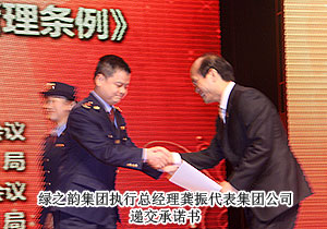 在這個(gè)莊嚴(yán)而隆重的舞臺(tái)上,以綠之韻集團(tuán)董事長(zhǎng)胡國(guó)安等為代表的直銷企業(yè)負(fù)責(zé)人向長(zhǎng)沙市工商行政管理局黨組書記、局長(zhǎng)陳躍文鄭重遞交守法經(jīng)營(yíng)承諾書,寓示著各直銷企業(yè)嚴(yán)格自律、共同維護(hù)直銷秩序、堅(jiān)決抵制傳銷的決心。胡國(guó)安董事長(zhǎng)作為行業(yè)企業(yè)代表發(fā)言,他表示,作為一名企業(yè)公民,綠之韻一定遵循行業(yè)自律的市場(chǎng)規(guī)則,謀求與各直銷企業(yè)共同和諧發(fā)展,同時(shí),作為一名企業(yè)公民,綠之韻也將在企業(yè)治理和道德價(jià)值、企業(yè)對(duì)人的責(zé)任、企業(yè)對(duì)環(huán)境的企業(yè)、企業(yè)發(fā)展中對(duì)社會(huì)的責(zé)任與貢獻(xiàn)等四個(gè)方面承擔(dān)起責(zé)任,認(rèn)真學(xué)習(xí)貫徹兩個(gè)條例,嚴(yán)格遵守相關(guān)法律法規(guī),與傳銷劃清界限,以民族直銷企業(yè)為已任,與各直銷企業(yè)及社會(huì)各界朋友一起共創(chuàng)美好和諧未來。