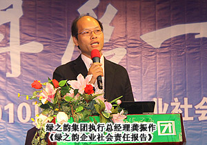 會上,綠之韻集團執(zhí)行總經(jīng)理龔振先生作《綠之韻企業(yè)社會責任報告》,與參會嘉賓深入探析民族企業(yè)與社會責任的關(guān)系,細致地詮釋綠之韻七年發(fā)展歷程中勇于承擔的胸襟和氣魄。報告指出:綠之韻作為“企業(yè)公民”,它所承擔的責任主要體現(xiàn)在四個方面:一是良好的公司治理和道德價值;二是企業(yè)對員工的社會安全保障及對全國各地分銷商的責任;三是企業(yè)對環(huán)境的責任;四是企業(yè)發(fā)展中對社會的責任與貢獻等。綠之韻企業(yè)社會責任的內(nèi)容已成為其核心戰(zhàn)略的一部分,成為企業(yè)社會投資、慈善事業(yè)、社區(qū)服務的一部分。