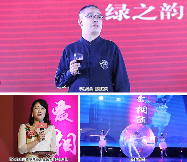 這華燈璀璨的難忘之夜,全球綠之韻人的歡樂(lè)與夢(mèng)想在此匯聚,真情與愛心在此融合。夜幕初降,綠之韻慈善名流們身著華麗盛裝,緩緩步入溫馨的晚宴會(huì)場(chǎng)。在花束簇?fù)淼募t地毯盡頭,茶香沁人,胡國(guó)安董事長(zhǎng)以家鄉(xiāng)的黑茶歡迎綠之韻家人們回家!