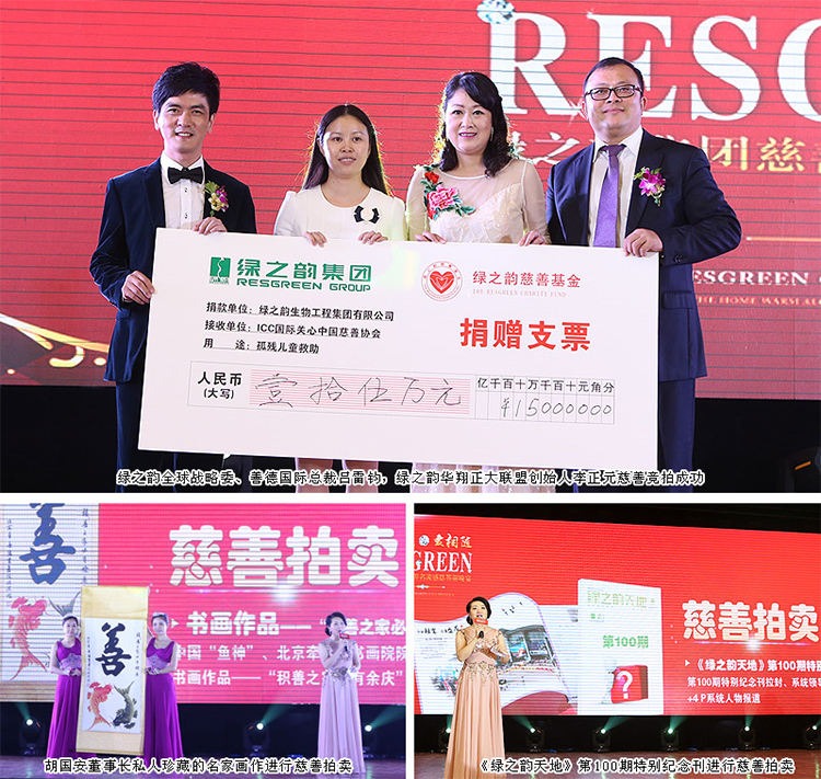慈善拍賣,所得款項(xiàng)全部捐給國(guó)際關(guān)心中國(guó)慈善協(xié)會(huì)(簡(jiǎn)稱ICC),是本次慈善名流晚宴的一大亮點(diǎn)。晚宴上,胡國(guó)安董事長(zhǎng)慷慨捐出私人珍藏的當(dāng)代著名書畫家陳洪作品《積善之家必有魚慶》進(jìn)行慈善拍賣,被綠之韻全球戰(zhàn)略委、善德國(guó)際總裁呂雷鈞以7萬(wàn)元拍得;現(xiàn)場(chǎng)慈善拍賣的《綠之韻天地》第100期特別紀(jì)念刊拉封及團(tuán)隊(duì)系統(tǒng)報(bào)道版面成為本次活動(dòng)的焦點(diǎn),蒞臨出席晚宴的綠之韻家人們紛紛慷慨解囊、踴躍參加慈善競(jìng)拍?!?000元、20000元、68000元、80000元……”現(xiàn)場(chǎng)的愛心舉牌競(jìng)拍叫價(jià),此起彼伏,愛心濃烈。最終,這項(xiàng)拍品以8萬(wàn)元被綠之韻華翔系統(tǒng)正大聯(lián)盟創(chuàng)始人李正元拍得。