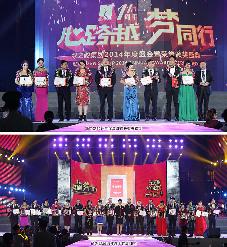 2003年,癸未肇始發(fā)軔;2013年,癸已事業(yè)昌盛;2014年,甲午紀元新始。2014年10月25日,“心跨越·夢同行”綠之韻集團2014年度盛會暨榮譽頒獎盛典在湖南國際會展中心盛大舉行,各級領導、嘉賓以及來自海內外的綠之韻家人們共計一萬多人,歡歌雷動,攜手融聚,共賀綠之韻十一周年快樂。