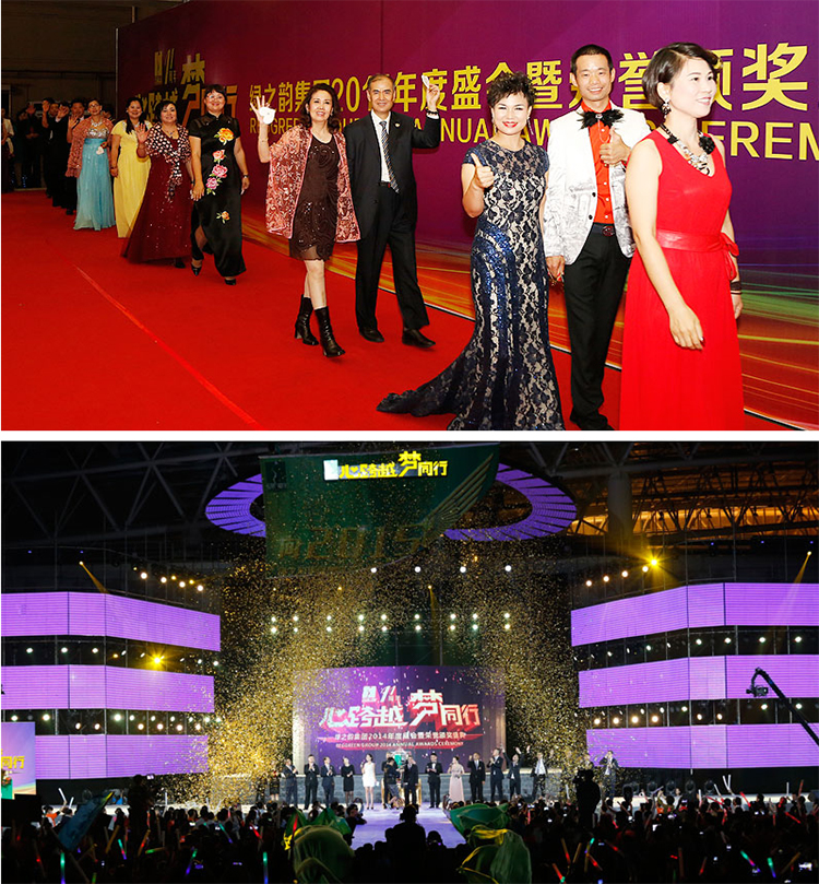 萬人盛典,歡歌融聚;恢弘巨制,輝耀星漢。氣勢恢宏的湖南國際會展中心,“心跨越,夢同行”綠之韻集團2014年度盛會暨榮譽頒獎盛典會場,斥資千萬、中部最頂級、最豪華會展中心舞臺流光溢彩、磅礴大氣,許美靜、鄭智化、雪狼等眾多巨星大腕載夢而歌,周華健、汪峰、鳳凰傳奇等明星大咖秀激情同慶。綠之韻用最具震撼力的視聽盛宴,熱情迎接大江南北綠之韻家人的歸來,震撼開啟十一周年慶典心夢之旅。