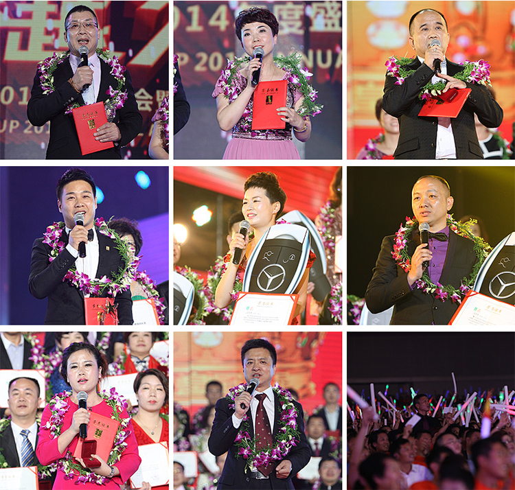 在全場熱烈的掌聲和歡呼聲中,胡國安董事長在耀眼光束聚焦下,乘坐“綠之韻號”專機降落到舞臺中心,發(fā)表了熱情洋溢的重要講話?!?014年這個星光燦爛的夜晚,你們開心嗎?首先請允許我代表綠之韻集團向長期關心和支持綠之韻事業(yè)發(fā)展的各位領導嘉賓、媒體朋友和家人們致以真誠的感謝和誠摯的問候。2014年習近平總書記勵精圖治,開啟了中國夢的嶄新篇章;一個月前,阿里美國上市,誕生了300位以上的億萬富翁,上萬計的千萬富翁,開啟了電商的嶄新篇章。2014年在所有綠之韻家人的努力下,綠之韻夢想啟迪未來的全國巡回演講如火如荼;一個月前,綠之韻上海全球連鎖酒店成功奠基,未來全國30家全球連鎖酒店將成為廣大營銷伙伴的培訓中心。還有茶文化高端會所,連鎖餐飲……綠之韻所做的這一切,就是為了給廣大營銷伙伴打造最優(yōu)秀的創(chuàng)業(yè)平臺,幫助每一個綠之韻人實現不同階段的夢想。今天來到現場的朋友都懷著和我一樣的夢想。我來自雪峰山下,我兒時的夢想是走出山村,讓父母過上幸福的生活;上大學后,我讓父母過上了幸福的生活,并萌發(fā)了創(chuàng)業(yè)的夢想。2003年,我創(chuàng)辦了綠之韻,致力于將它發(fā)展合法的、知名的民族企業(yè)。在領導們的支持和伙伴們的努力下,綠之韻成為了全國第26家拿牌直銷企業(yè),成為了民族企業(yè)的驕傲。我現在的夢想是在未來10年,我的有生之年,一是讓每一個綠之韻人都能成為家人的驕傲和家族的榜樣,二是讓每一個和綠之韻合作的伙伴、廠商能夠成為其所在產業(yè)領域的領頭羊,三是能夠帶領綠之韻沖出亞洲,走向世界。只要相信和堅持,所有的夢想一定能實現。祝所有的綠之韻人都能夢想成真!”