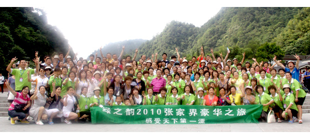 2010年7月29日, 150多名綠之韻中層骨干帶著參加2010年第二屆系統(tǒng)建設(shè)暨中層骨干研討會收獲新知的喜悅,在董事長胡國安的帶領(lǐng)下,展開了為期四天的張家界豪華之旅。