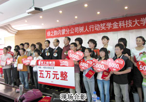 2010年5月24日,內(nèi)蒙古科技大學(xué)禮堂內(nèi)座無虛席,由綠之韻慈善基金聯(lián)合內(nèi)蒙古青少年基金會、內(nèi)蒙古科技大學(xué)主辦的“綠之韻樹人行動”捐贈儀式隆重舉行。這是綠之韻內(nèi)蒙古分公司成立一周年以來,第二次在內(nèi)蒙古地區(qū)開展“綠之韻樹人行動”,以資助更多的貧困大學(xué)生完成學(xué)業(yè)。綠之韻集團(tuán)執(zhí)行總經(jīng)理龔振、內(nèi)蒙古分公司經(jīng)理侯立新、內(nèi)蒙古科技大學(xué)學(xué)工部部長王軍、綠之韻集團(tuán)內(nèi)蒙古地區(qū)領(lǐng)導(dǎo)人王連坤、郝建兵等愛心精英代表、以及內(nèi)蒙古科技大學(xué)“綠之韻樹人行動”獎學(xué)金獲得者齊聚一堂,共同見證“綠之韻樹人行動”在內(nèi)蒙古科技大學(xué)再啟愛心接力。