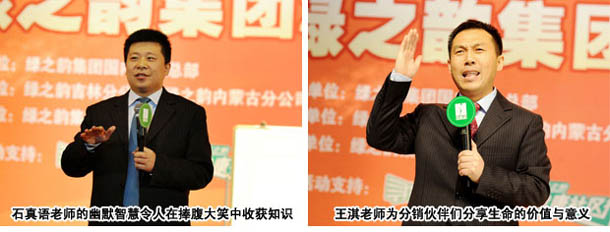 早晨七點(diǎn),陸續(xù)就有全國(guó)各地趕來的伙伴來到峰會(huì)現(xiàn)場(chǎng),這其中有連續(xù)四年、五年每年都來參與的骨干精英,也有第一次慕名前來感受峰會(huì)盛況的伙伴,雖然很多都是素不相識(shí),但回家的喜悅卻讓所有伙伴感到由衷的親切。歷屆年會(huì)、峰會(huì)集錦的視頻資料在會(huì)場(chǎng)大屏幕上播出,一幕幕場(chǎng)景再次觸動(dòng)了伙伴們的內(nèi)心,讓所有分銷伙伴感受到是因?yàn)閳?jiān)持才有了那么多記錄成長(zhǎng)的鏡頭,是辛勤的耕耘才有那么多收獲的掌聲。一天緊張有序的學(xué)習(xí)中,綠之韻集團(tuán)戰(zhàn)略發(fā)展顧問、行業(yè)知名專家禹露先生首先立足行業(yè),解析綠之韻獨(dú)特的企業(yè)文化、不可替代的行業(yè)競(jìng)爭(zhēng)區(qū)域優(yōu)勢(shì)以及企業(yè)發(fā)展中為社會(huì)所做的貢獻(xiàn)等成功優(yōu)勢(shì),幫助大家更多方面了解公司。綠之韻集團(tuán)執(zhí)行總經(jīng)理龔振作了綠之韻集團(tuán)2010年市場(chǎng)目標(biāo)報(bào)告,并以“世界的眼睛在看中國(guó)、中國(guó)的經(jīng)濟(jì)看民企、民企的發(fā)展看行業(yè)”為演講主題,激發(fā)了綠之韻人內(nèi)心的愛國(guó)精神和推動(dòng)綠之韻事業(yè)向前發(fā)展不可阻擋的氣勢(shì)。緊接著,綠之韻集團(tuán)與交通銀行聯(lián)合發(fā)行的視頻播放,贏得廣大分銷商的推崇,因?yàn)榫G之韻薪金卡是綠之韻人價(jià)值的體現(xiàn),展示出一份尊貴氣質(zhì),現(xiàn)場(chǎng)咨詢場(chǎng)面火爆異常。