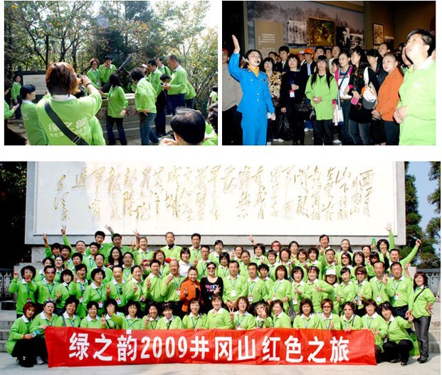 “綠之韻2009井岡山紅色之旅”也是集團公司第一次組織到井岡山旅游,雖然路途比較遙遠,大部分時間都在長途跋涉的汽車上度過,但到達目的地后,所有綠之韻人就被“井岡山精神”深深感染,為期三天的旅游時間很快度過,在回程的路上所有家人都意猶未盡,個個爭先恐后的與大家分享自己的感受,大家紛紛表示:“此次紅色之旅對于個人來說不僅僅是一次純粹的游玩,更感覺是一次深度的學習,特別是一次心靈的洗禮,回到市場上后一定要第一時間把自己所看到的、感受到的分享給自己的伙伴??嗖豢?,想想當年紅軍二萬五;累不累,想想當年井岡革命老前輩”。
