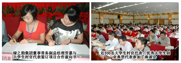 2009年8月24日至25日,湖南省大學(xué)生村官創(chuàng)業(yè)成才座談會(huì)在長沙召開。省委副書記梅克保出席會(huì)議并講話。省人大常委會(huì)黨組成員王四連、省人民政府副省長韓永文、省政協(xié)副主席何報(bào)翔、省委常委、組織部長黃建國,共青團(tuán)湖南省委書記張值恒等領(lǐng)導(dǎo)出席會(huì)議,綠之韻集團(tuán)董事常務(wù)副總經(jīng)理勞嘉受邀出席。據(jù)介紹,本次座談會(huì)由共青團(tuán)湖南省委、省委基層辦組織的,湖南省大學(xué)生村官代表、優(yōu)秀大學(xué)生創(chuàng)業(yè)典型代表近300人參加了座談會(huì)。