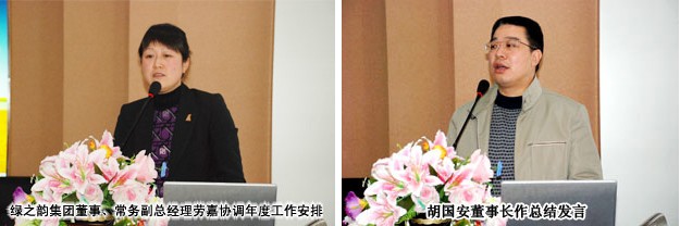 在會上,新員工代表張薇以“綠之韻成就夢想”為題作了發(fā)言。隨后,龔總?cè)骊U述09年公司在教育培訓(xùn)、市場拓展以及根據(jù)地、分公司建設(shè)等方面的工作任務(wù)。接著,勞總對“2•28高峰會”的各項籌備工作作了說明,提出了09年公司在六個重點方面的業(yè)績指標(biāo),并要求全體員工增強(qiáng)責(zé)任意識,加強(qiáng)執(zhí)行力。