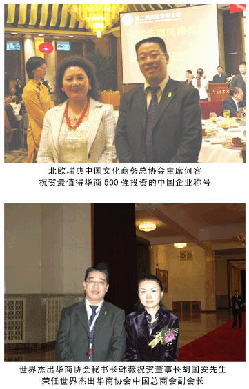 世界杰出華商協(xié)會、中國商業(yè)聯(lián)合會等單位,向全球華商最具影響力的企業(yè)授予了最高榮譽的頒獎。香港綠之韻國際集團以強勢的市場發(fā)展?jié)摿头€(wěn)固的公司實力,榮獲了“最值得華商500強投資的中國企業(yè)”稱號,香港綠之韻國際集團董事長胡國安先生榮任“世界杰出華商協(xié)會中國總商會副會長”一職,并成為了世界杰出華商“華人億萬富翁俱樂部會員”。