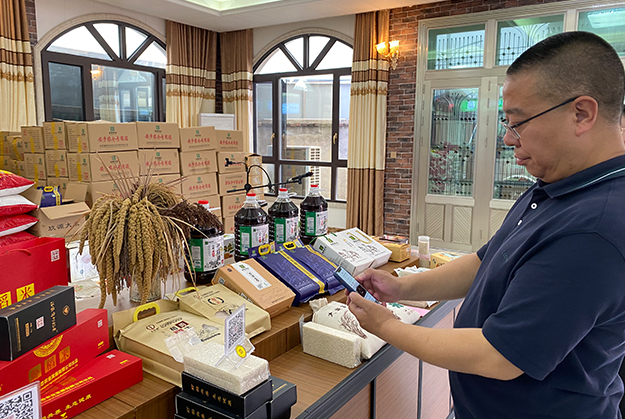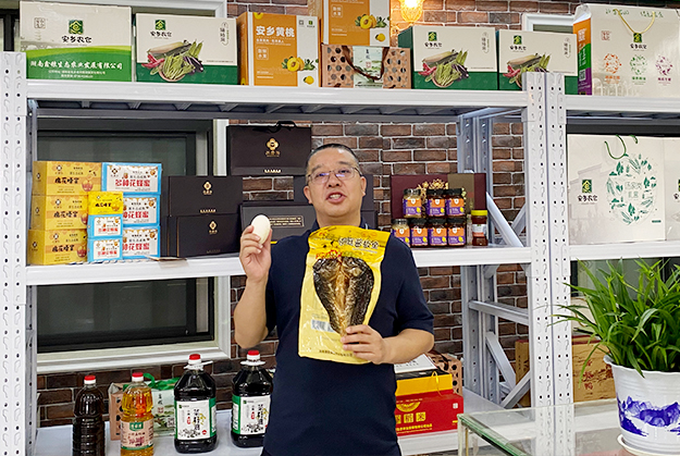 開班儀式后,胡國安董事長陪同調(diào)研組一行前往安鄉(xiāng)農(nóng)倉,考察安鄉(xiāng)農(nóng)產(chǎn)品和電商直播情況。據(jù)了解,“安鄉(xiāng)農(nóng)倉”是隸屬于安鄉(xiāng)縣的區(qū)域公用品牌,由以珊珀湖魚為代表的鮮活類系列產(chǎn)品、以黃山頭鴨為代表的鹵臘休閑類系列產(chǎn)品、以湯家崗米為代表的糧油類系列產(chǎn)品組成,這也標(biāo)志著作為農(nóng)業(yè)大縣的安鄉(xiāng)正在轉(zhuǎn)型發(fā)展、正在實行品牌發(fā)展、正在高質(zhì)量發(fā)展,正在實現(xiàn)“農(nóng)業(yè)大縣向農(nóng)業(yè)強縣”的華麗蝶變。