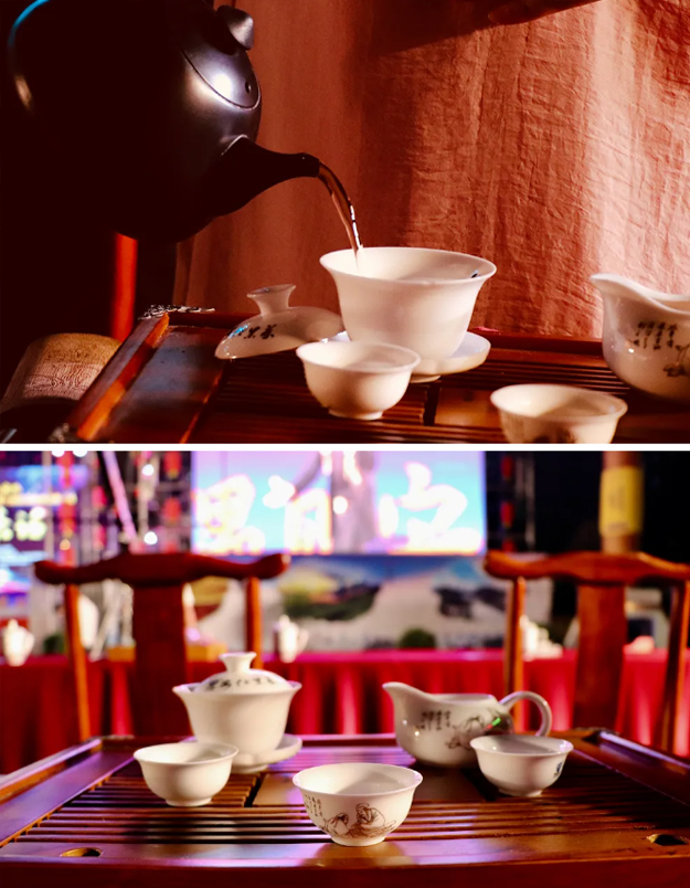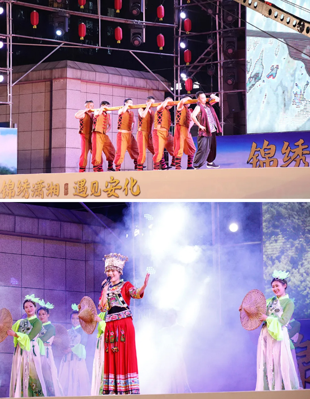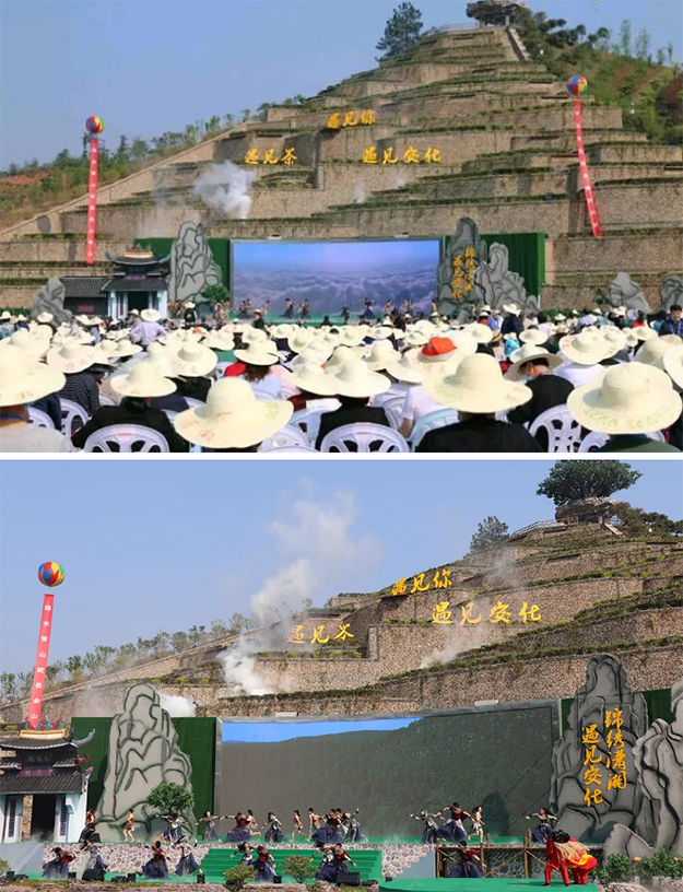 安化,古稱梅山,有十大峒蠻,為首峒主稱梅王。梅王宴,相傳是梅王待客主宴。4月27日晚在品嘗了風味獨特的“梅王宴”之后,胡國安董事長與上千名嘉賓一起,在梅山腹地安化縣城陶澍廣場參加燈火輝煌,弦歌燕舞,黑茶飄香,別具風情的“梅山茶話”活動。晚會節(jié)目以梅山非遺內(nèi)容展示為主,穿插曼妙雅致的茶藝表演,氣勢磅礴的詩歌朗誦,無人機編隊花樣飛翔,整個茶話活動場面有序而熱鬧,溫馨而熱烈,高潮迭起,掌聲不斷,為整個旅游活動營造了一種節(jié)日喜慶的氛圍。