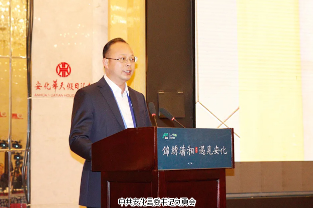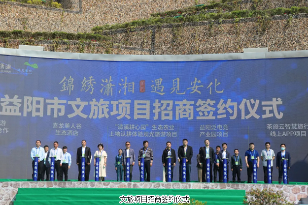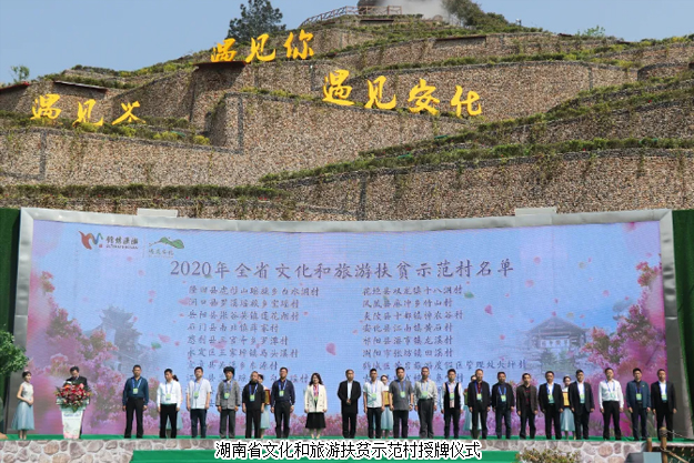 開幕式上,舉行了2020年湖南省文化和旅游扶貧示范村授牌儀式,推介了湖南文旅資源、項目及旅游促銷獎勵辦法,現(xiàn)場還進行了文旅項目招商簽約儀式。胡國安董事長陪同與會的領(lǐng)導及嘉賓參與了茶鄉(xiāng)花海生態(tài)文化體驗園巡園、產(chǎn)業(yè)扶貧暨特色文旅產(chǎn)品風情街巡街、消費扶貧暨文旅特色產(chǎn)品成果展示、“24小時健康茶生活”精品旅游線路游覽、益山益水·益美益陽全域旅游卡發(fā)行儀式、“遇見安化”茶生活體驗等活動。