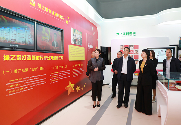 調研組一行先后參觀了綠之韻黨建文化教育基地和國際會議中心展廳。在黨建文化教育基地,中共長沙市委組織部副部長、兩新工委書記楊俊認真了解了綠之韻非公黨建工作情況,與董事總裁勞嘉、黨委書記劉云進行了詳細交流。黨委書記劉云介紹到:綠之韻是一家有著“綠體紅心”特質的企業(yè),始終將非公黨建工作置于發(fā)展戰(zhàn)略高度,自2006年成立黨支部,2013年獲批成立黨總支,2016年8月獲批成立黨委以來,堅持構建以集團黨組織為核心,以集團工會、公益基金會為主體,以三色(紅色、金色、綠色)建設為策略,注重紅色基因塑造的新時代非公黨建新生態(tài),實施“指導式”“責任式”“溫情式”管理,憑借著“正確領導踏實干,老板重視認真干,群眾支持加油干”的黨建工作理念,在全行業(yè)內創(chuàng)建了第一家黨建文化教育基地,形成了具有綠之韻特色的非公黨建工作品牌。調研組一行邊走邊看,對綠之韻近年來黨建工作的創(chuàng)新舉措和喜人成績給予了高度評價。