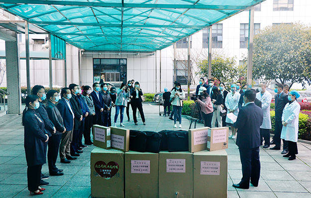 愛心匯聚,眾志成城。捐贈儀式上,胡國安理事長向同病魔做斗爭的患者及其家屬表示誠摯慰問,向英勇奮戰(zhàn)在疫情防控第一線的同志們,特別是廣大的醫(yī)務(wù)工作者表示衷心感謝,致以崇高敬意!他表示:自疫情出現(xiàn)以來,醫(yī)護人員上下同心、眾志成城,發(fā)揚了擔當之勇、發(fā)揮了科學(xué)之謀,彰顯了統(tǒng)籌之能,一手抓防控,一手抓救助,有條不紊開展工作。醫(yī)護人員懸壺濟世、救死扶傷的醫(yī)者仁心,勇敢逆行、甘于奉獻的無疆大愛都值得我們學(xué)習(xí)。當前,疫情雖然得到有效控制,但仍處于防控關(guān)鍵時期,湖南省長沙市光彩事業(yè)基金會的抗“疫”行動也將持續(xù)。我們將繼續(xù)動員組織廣大民營企業(yè)發(fā)揮自身作用,彰顯民營企業(yè)家的勇于奉獻、敢于擔當、大愛無疆的優(yōu)良精神,眾志成城,同舟共濟,同心抗疫,做好疫情防控和生產(chǎn)發(fā)展等各項工作,助力打贏疫情防控阻擊戰(zhàn)。