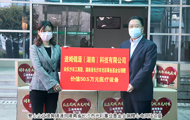 2020年3月20日,長沙市工商聯(lián)、湖南省長沙市光彩事業(yè)基金會抗擊新冠肺炎疫情愛心捐贈儀式在長沙舉行。長沙市政協(xié)副主席、市工商聯(lián)主席彭繼球,市工商聯(lián)副主席劉立紅;湖南省長沙市光彩事業(yè)基金會理事長、綠之韻集團董事長胡國安;長沙市中醫(yī)醫(yī)院(長沙市第八醫(yī)院)黨委書記鄧雄飛,黨委副書記、院長周繼如,副院長黃征宇、吳小寧、唐勇;迪姆錦源(湖南)科技有限公司董事長吳余生等領(lǐng)導(dǎo)出席捐贈儀式。