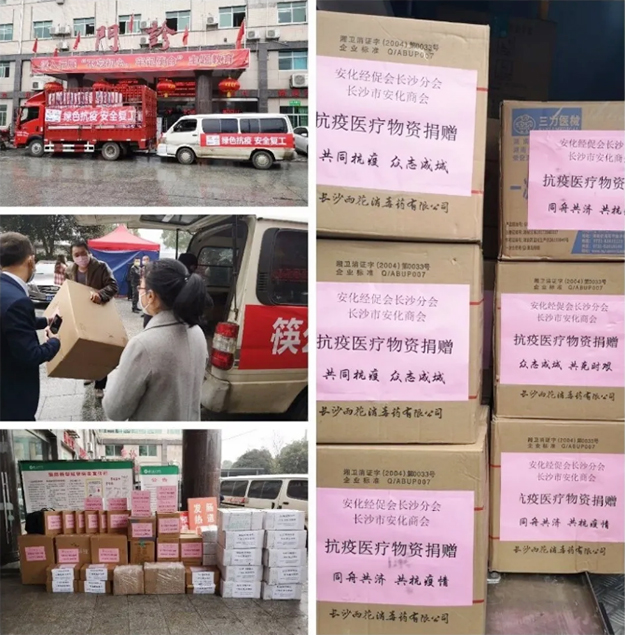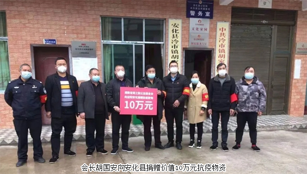 自疫情爆發(fā),安化縣經(jīng)促會長沙分會、長沙市安化商會密切關(guān)注安化縣疫情發(fā)展,得知安化縣緊缺醫(yī)療防護(hù)物資,會長胡國安、執(zhí)行會長夏曉輝、常務(wù)副會長兼輪值會長吳余生等領(lǐng)導(dǎo)快速反應(yīng),積極作為,部署秘書處發(fā)動(dòng)會員支援安化。1月30日,安化縣經(jīng)促會長沙分會、長沙市安化商會向會員企業(yè)發(fā)起“支援安化抗擊疫情”的專項(xiàng)募捐活動(dòng),倡議各安商積極行動(dòng),支援安化,萬眾一心,抗擊疫情。倡議發(fā)出后,會員們積極響應(yīng),紛紛慷慨解囊,奉獻(xiàn)愛心,更有部分會員排除萬難,親自護(hù)送物資前往安化,以解安化燃眉之急。2月1日,會長胡國安捐贈價(jià)值10萬元的韓國KF口罩、醫(yī)用外科口罩、消毒液、洗護(hù)用品等醫(yī)療抗疫物資并親自護(hù)送至安化。