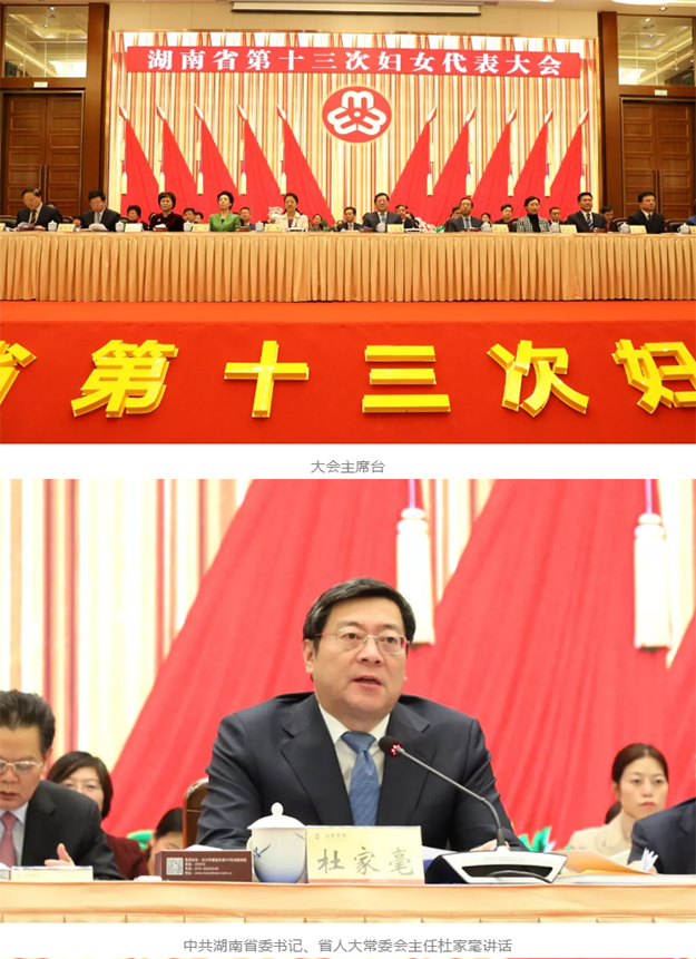 開幕式上,中共湖南省委書記、省人大常委會主任杜家毫代表省委、省人大常委會、省政府、省政協(xié)向大會的召開表示祝賀。他強調(diào),全省各級婦聯(lián)要牢牢堅持黨的領導這一根本保證,牢牢把握橋梁紐帶的定位,牢牢抓住聯(lián)系和服務婦女這一工作生命線,切實增強政治性、先進性、群眾性,更加關注、關心、關愛婦女兒童,最廣泛地凝聚婦女力量。各級黨委要加強和改進對婦聯(lián)工作的領導,支持和推動婦聯(lián)改革向縱深發(fā)展、在基層落地,重視婦聯(lián)干部隊伍建設,關心培養(yǎng)婦女干部,努力為廣大婦女全面發(fā)展營造良好環(huán)境。