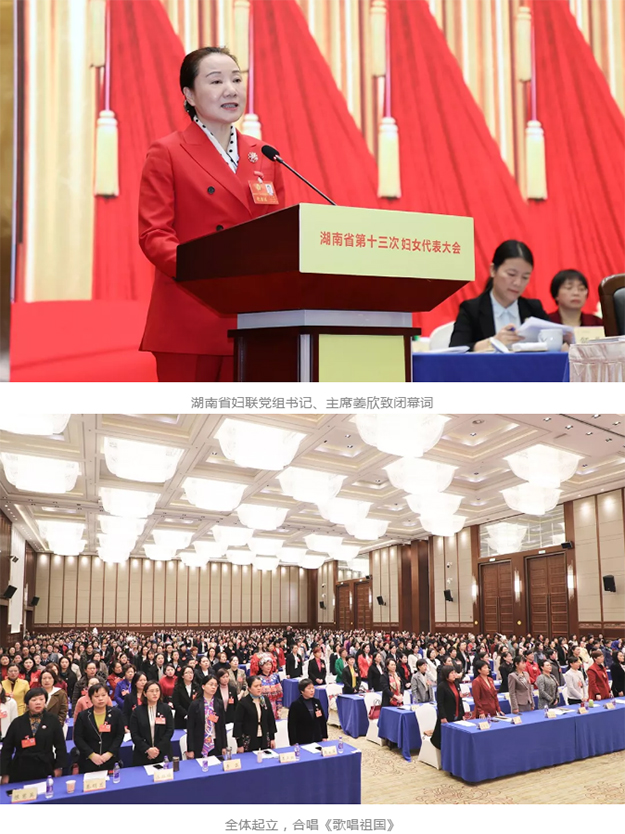 閉幕式上,大會宣布了新當選的省婦聯(lián)第十三屆主席、副主席,常務委員名單,通過了《關于湖南省婦聯(lián)第十二屆執(zhí)行委員會報告的決議》(草案)。姜欣當選湖南省婦聯(lián)第十三屆主席。中共湖南省委常委、省人民政府常務副省長謝建輝代表省委向新當選的省婦聯(lián)領導班子表示熱烈祝賀。她希望,新一屆省婦聯(lián)領導班子立足新起點,搶抓新機遇,團結(jié)帶領廣大婦女開拓進取、扎實工作,奮力譜寫湖湘婦女事業(yè)發(fā)展新篇章。大會在全體婦女代表共同合唱《歌唱祖國》的歌聲中落下帷幕。