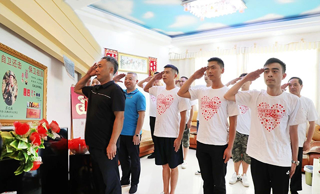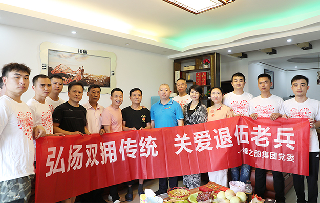 為紀(jì)念中國(guó)人民解放軍建軍93周年,近日,綠之韻集團(tuán)黨委組織開(kāi)展了“弘揚(yáng)雙擁傳統(tǒng),關(guān)愛(ài)退伍老兵”的主題黨日活動(dòng)。綠之韻集團(tuán)副總裁胡均安、執(zhí)行總經(jīng)理夏運(yùn)良、黨委書(shū)記劉云、工會(huì)主席兼集團(tuán)辦公室行政總監(jiān)馮紅、黨委副書(shū)記許達(dá)仲帶領(lǐng)著就職于集團(tuán)的十余名退伍軍人前往瀏陽(yáng)市洞陽(yáng)鎮(zhèn),向退伍老兵送上慰問(wèn)金和濃濃的節(jié)日祝福。