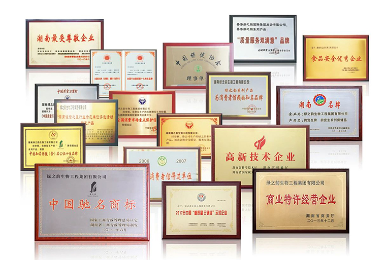 綠之韻始終堅持“以產(chǎn)品為導(dǎo)向”的發(fā)展理念,所推出的產(chǎn)品都緊緊圍繞綠色、天然、健康和養(yǎng)生理念,以產(chǎn)學(xué)研結(jié)合為模式先后與南京大學(xué)、湖南農(nóng)業(yè)大學(xué)、湖南中醫(yī)藥研究院、湖南中醫(yī)藥大學(xué)等多所高等院校及科研機構(gòu)達成戰(zhàn)略合作,形成了一批以權(quán)威專家教授為核心的產(chǎn)品科研隊伍,具有較強的創(chuàng)新研發(fā)能力。公司系列產(chǎn)品先后通過多項國際權(quán)威認證:保健食品GMP認證、ISO14001:2015環(huán)境管理體系、ISO9001:2015質(zhì)量管理體系、HACCP食品安全管理體系認證。公司先后被授予“國家高新技術(shù)企業(yè)”“湖南省著名商標(biāo)”“湖南名牌”等榮譽。