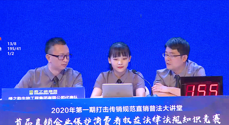8月20日,根據(jù)國家市場監(jiān)督管理總局工作安排,由國家市場監(jiān)督管理總局規(guī)范直銷與打擊傳銷辦公室指導(dǎo)、中國消費(fèi)者報(bào)社承辦、重慶市市場監(jiān)督管理局協(xié)辦的2020年首期打傳規(guī)直普法大講堂宣傳活動在重慶召開。綠之韻集團(tuán)受邀參加本次會議,并組建知識競賽代表隊(duì)參與“直銷企業(yè)保護(hù)消費(fèi)者權(quán)益法律法規(guī)知識競賽”環(huán)節(jié),與其他 8 家直銷企業(yè)代表隊(duì)同臺競技,展示行業(yè)整體積極風(fēng)貌。