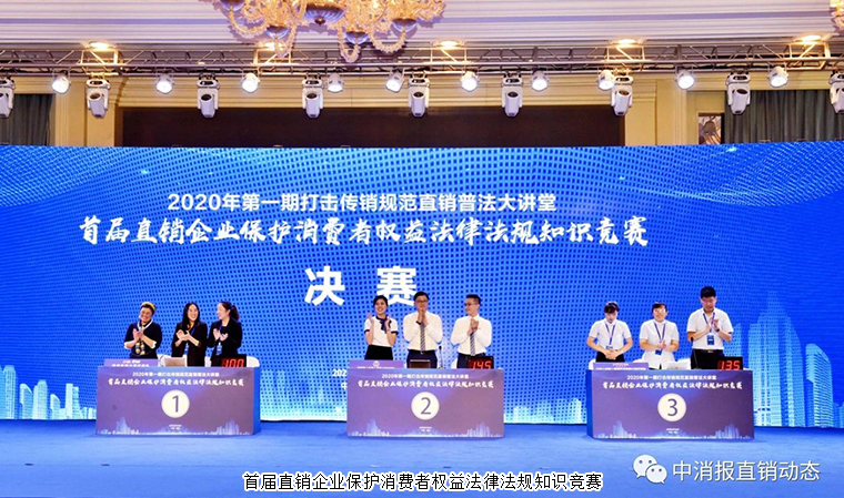 為扎實做好“六穩(wěn)”工作,全面落實“六?!比蝿眨?月20日,以“復商復市促消費 誠信守法保經(jīng)營”為主題的2020年第一期打擊傳銷規(guī)范直銷普法大講堂活動在重慶市舉辦。本次普法宣傳活動由國家市場監(jiān)督管理總局規(guī)范直銷與打擊傳銷辦公室指導,中國消費者報社承辦、重慶市市場監(jiān)督管理局協(xié)辦。市場監(jiān)管總局規(guī)范直銷與打擊傳銷辦公室、中國消費者報社、重慶市市場監(jiān)督管理局主要負責同志、重慶市渝北區(qū)人民政府有關負責同志參加了本次活動。綠之韻集團董事、總裁勞嘉受邀參加活動并接受了采訪,綠之韻集團市場管理中心業(yè)務總經(jīng)理曹兵帶領公司知識競賽代表隊參加了本次普法宣傳活動。
